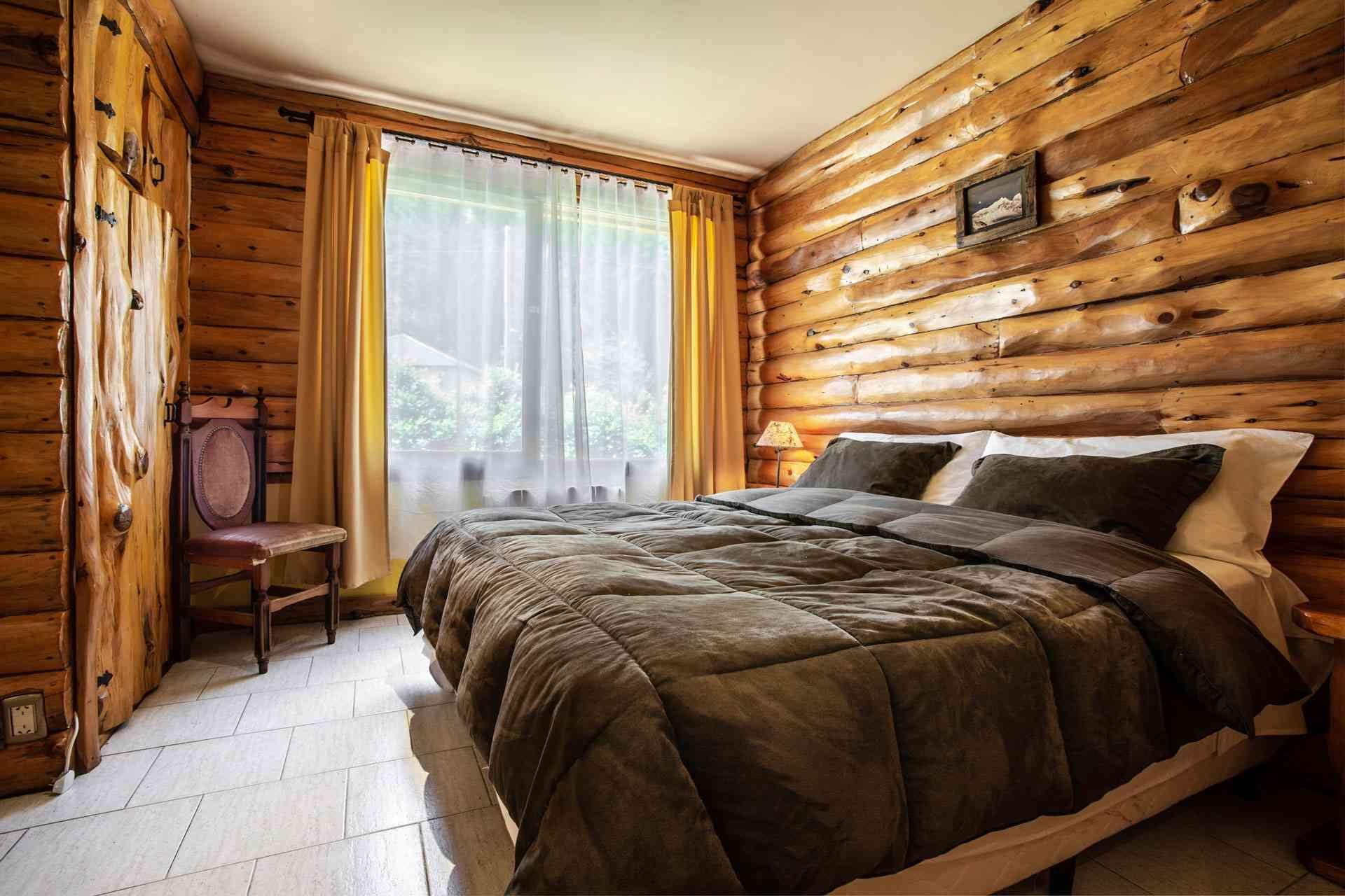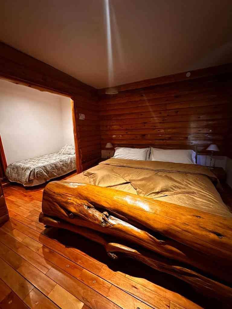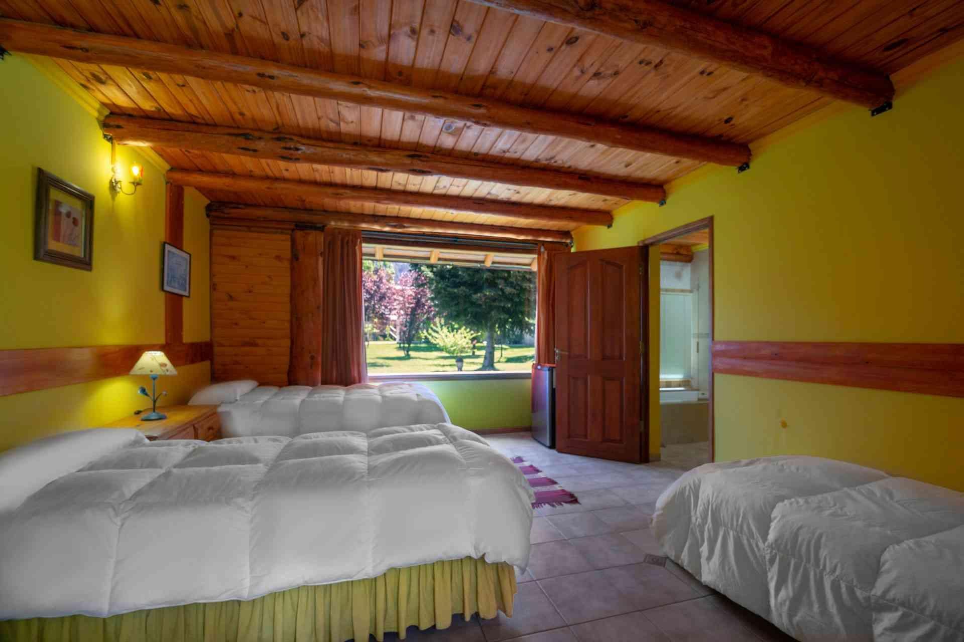 Sin dudas, la calidez de la madera de la suite Maitén es única. Está equipada con cama King size + cama individual, baño completo con bañera, calefacción central y frigobar. Cuenta con vistas al jardín y al Cerro Currumahuida.